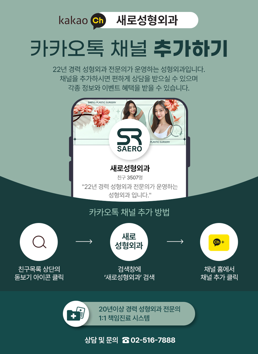 새로에서는 22년 경력의 성형외과 전문의가 수술 환자분들과의 1:1 상담부터 수술까지 함께하여 대리수술의 걱정이 없으며 수술 환자분들의 고민을 한번에 해결해드립니다.