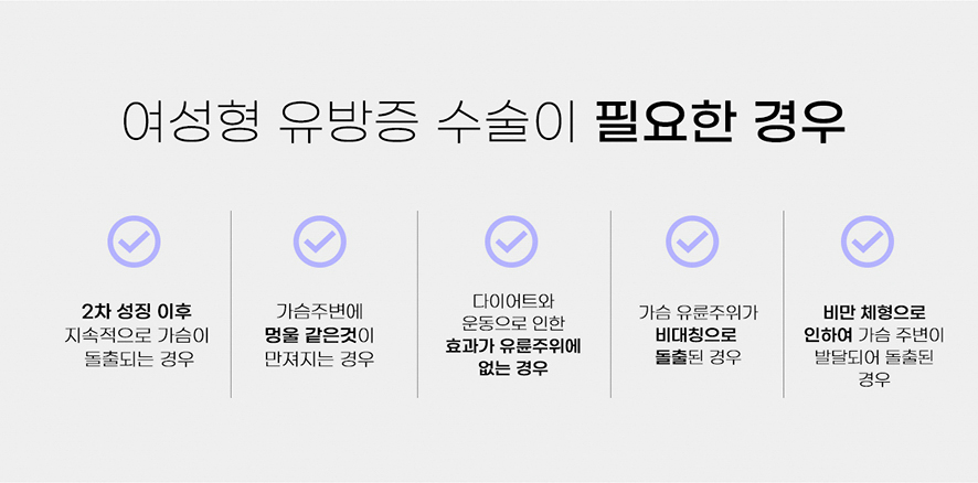 새로의 여성형 유방증 수술이 필요한 경우에는 다음과 같습니다.