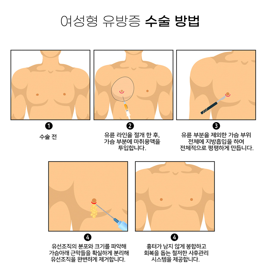 새로 여성형 유방증 수술은 이렇게 진행이 됩니다.